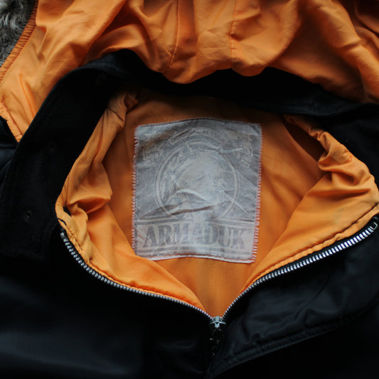 Armaduk Vintage Bomber Jacket with Fur Hood – Black (Man-L)