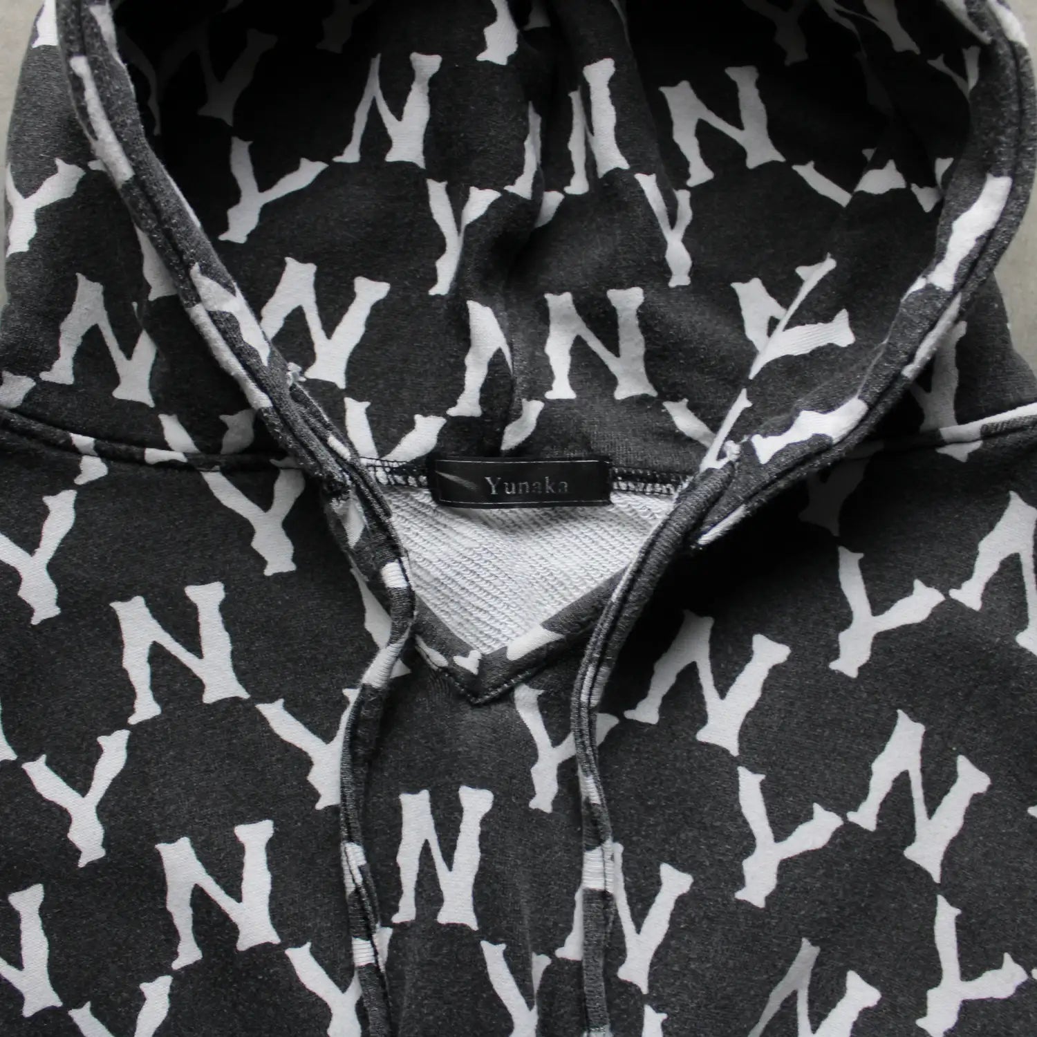 Yunaka All-Over Logo Crop Hoodie – Black/White (Woman-M)